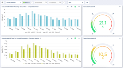 De même, un benchmark d’un bâtiment par rapport aux standards (RT, références externes) ou un benchmark en interne (comparaison des indicateurs de performance des différents sites de l’organisation) pourra être effectué dans un outil de monitoring énergétique.